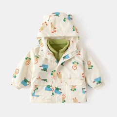 ¥229.00戴维贝拉(DAVE&BELLA)男童外套加厚女童连帽上衣男宝宝洋气小女孩保暖秋冬小童 米白底印花 130cm(建议身高120-130cm)
