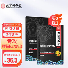¥68.00北京同仁堂 腰椎间盘突出膏贴(6贴/盒) 腰肌劳损腰疼腰酸治疗贴护腰椎远红外理疗贴