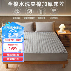 ¥219.00博洋(BEYOND)全棉床笠夹棉抑菌防螨加厚床褥席梦思保护罩套防尘床罩防滑可水洗 全棉水洗夹棉加厚床笠—灰色 180*200cm