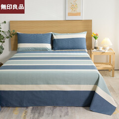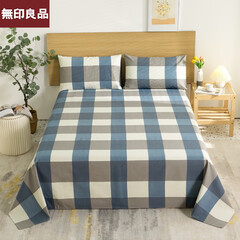 ¥259.00無印良品 新款纯棉老粗布床单简约格子床单床上用品凉席可水洗 蓝格 200*230cm床单+枕套一对