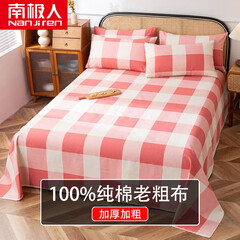 ¥88.00南极人(NanJiren)全棉加厚老粗布床单单件纯棉床罩单人学生宿舍被单床上用品 粉格【粗布透气】 230x270cm床单+枕套二只