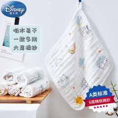 ¥19.90迪士尼宝宝(Disney Baby) A类纯棉6层纱布口水巾婴儿毛巾方巾宝宝精梳棉洗脸巾新生儿童手帕手绢可洗3条装