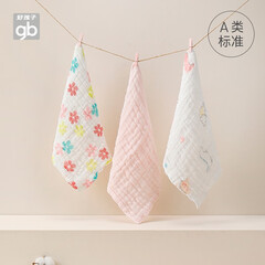¥35.00gb好孩子口水巾新生婴儿毛巾新生软宝宝纱布巾儿童洗脸小方巾3条装 粉红(3条装)