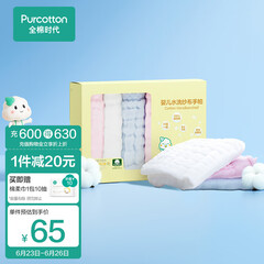 ¥85.00全棉时代婴儿手帕毛巾纯棉纱布口水巾小方巾儿童礼盒装蓝粉白三色6条/盒
