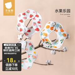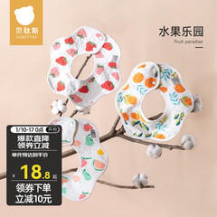 ¥28.80贝肽斯口水巾婴儿围嘴新生宝宝纯棉防水吐奶吃饭春夏款柔软透气围兜脖围 水果乐园(花瓣款 3条装) 通用