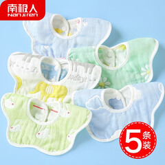 ¥17.30南极人(Nanjiren) 婴儿口水巾5条装宝宝围嘴围脖6层纱布360度旋转吸水口水兜围兜儿童饭兜吐奶垫巾