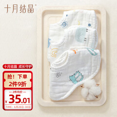 ¥38.90十月结晶婴儿口水巾0-1岁宝宝围嘴印花纱布新生婴儿童吸水薄款透气3条