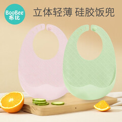 ¥35.90布比(Boo Bee)宝宝吃饭围兜辅食饭兜防水硅胶婴儿超软儿童围嘴口水防脏神器 纳米硅胶饭兜【绿色+粉色】