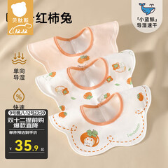 ¥35.90贝肽斯婴儿围嘴秋冬加厚宝宝防吐奶口水巾纯棉防水新生儿饭兜围兜 贝卡红柿兔【棉*导湿速干】3条装