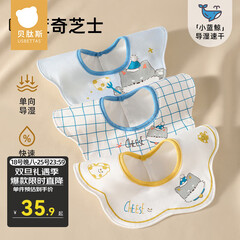 ¥35.90贝肽斯婴儿围嘴秋冬加厚宝宝防吐奶口水巾纯棉防水新生儿饭兜围兜 布蓝奇芝士【棉*导湿速干】3条装