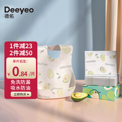 ¥39.90德佑婴儿一次性防水围兜宝宝口水巾儿童饭兜免洗防水吸油可调节围嘴 牛油果款20片/盒-独立装