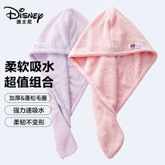 ¥39.90迪士尼(Disney)干发帽吸水柔软家居干发帽干发巾 包头巾速干厚实加厚 【干发帽】粉*1紫*1