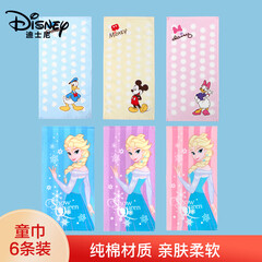 ¥69.00迪士尼(Disney)纯棉毛巾童巾儿童小毛巾柔软强吸水洗脸巾 组合6条装 25*50cm/条