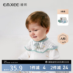 ¥59.90嫚熙(EMXEE)婴儿口水巾儿童宝宝围嘴纯棉纱布吃饭围兜可旋转 3条装 雨夜童话+气球岛+天空之旅