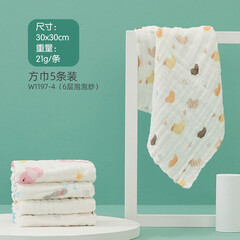 ¥29.90洁丽雅纯棉纱布毛巾新生儿婴儿口水巾儿童宝宝洗脸小方巾A类6层纱布 5条装A类6层纱布小版动物系列