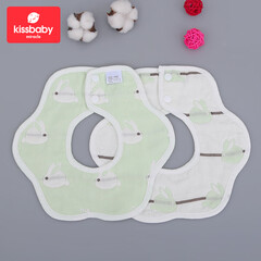 ¥9.90Kissbaby Miracle婴儿口水巾围嘴宝宝吃饭新生儿防吐奶6层纱布围兜 兔子单个装【6层纱布旋转款】