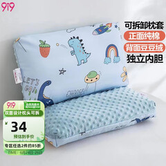 ¥39.909i9久爱久儿童枕头婴儿豆豆枕双面可拆宝宝纯棉枕套A092恐龙50*30cm