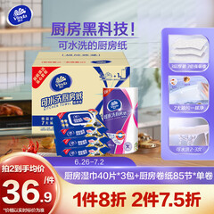 ¥51.90维达(Vinda)厨房用纸 厨房湿巾40片*3包+可水洗85节*单卷 厨房纸 吸油纸整箱