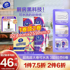 ¥79.90维达(Vinda)厨房用纸 可水洗卷纸85节*6卷 3层加厚厨房纸 超大卷吸油纸整箱