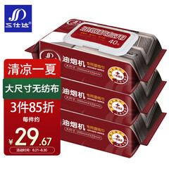 ¥34.90三仕达油烟机湿巾40片*3包去油去污厨房湿纸巾家用清洁厨大尺寸房用纸巾