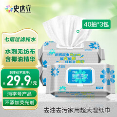 ¥29.90史达立 厨房湿巾40抽*3包 厨房用纸清洁 餐厨湿巾纸去油污 99.9%杀菌