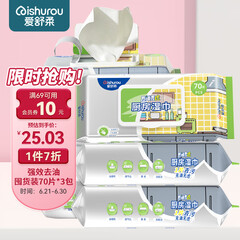 ¥15.20爱舒柔厨房湿巾70片油烟机湿巾 去油污湿纸巾 厨房用纸带一片轻松去油污