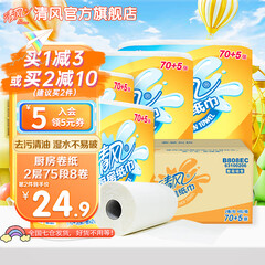 ¥34.90清风 厨房纸巾卷纸吸油纸75节*8卷吸水去油污不易破厨房用纸整箱装