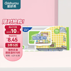¥42.20爱舒柔厨房湿巾70片*3包 油烟机湿巾 去油污湿纸巾 一片轻松去油污