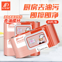 ¥77.90三仕达厨房湿巾80片5包翻盖装去油污湿纸巾油烟机灶台清洁湿巾纸 去油污湿巾80片5包