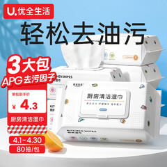 ¥10.90优全生活 厨房湿巾80抽*3包 去油污专用湿纸巾 厨房用纸 餐厨湿纸巾