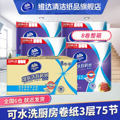 ¥54.90维达(Vinda)厨房卷纸3层75节8卷 卷筒纸擦手纸纸巾卫生纸吸水吸油去污家用 整箱