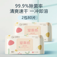 ¥14.90洁棉宝(Cottony)湿厕纸男士女士私处除菌卫生湿纸巾可冲马桶便携装洁厕湿巾40抽 旅游便携装【2包80片】