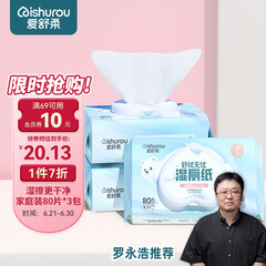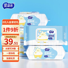 ¥38.90爱舒柔老罗推荐湿厕纸家庭装80片*3包 擦走细菌私处清洁 湿纸巾洁厕湿巾