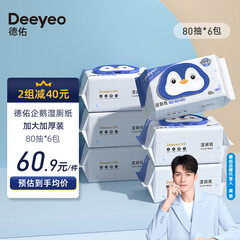 ¥80.90德佑湿厕纸家庭装80抽*6包 清洁湿纸巾湿巾 可搭配卷纸卫生纸使用