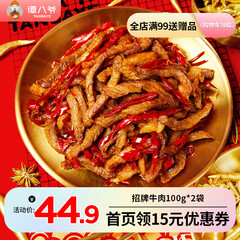¥44.90谭八爷 招牌冷吃牛肉干麻辣红油冷吃休闲食品肉干肉脯熟食四川特产小吃 100g*2袋(麻辣)