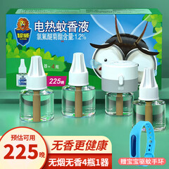 ¥29.90超威电蚊香液驱蚊水灭蚊器防蚊子家用蚊香器插电式电蚊香液防蚊灭蚊水 【无烟无香】4瓶1器(225晚)