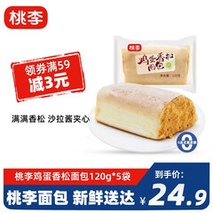 ¥24.90桃李 面包 鸡蛋香松包120g*5包 夹心面包营养早餐面包休闲零食点心 120g*5包