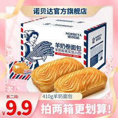 ¥29.90诺贝达手撕面包整箱礼盒 营养早餐软面包零食品办公室下午茶小吃 羊奶卷蛋奶味410g