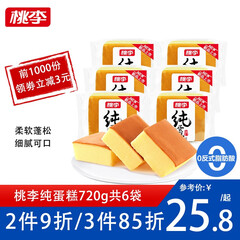 ¥28.80桃李 面包酵母巧克力味面包纯蛋糕8袋 营养手撕面包早餐食品休闲零食 桃李纯蛋糕6袋