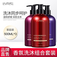 ¥79.90吕妃 乳果香氛沐浴露山茶花柔顺洗发水洗沐组合家庭套装去屑止痒 洗沐套装500ml*3瓶