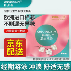 释清新导管式卫生棉条德国棉芯 体验装(超大+大+普通各2支)易推姨妈棒大流量月经条棒游泳防漏卫生巾