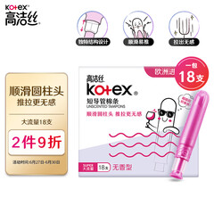 高洁丝(Kotex)导管式卫生棉条18支装 顺滑易推 欧洲进口棉芯 游泳卫生巾 大流量【18支装】