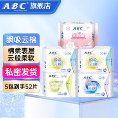¥59.90ABC卫生巾轻薄透气姨妈巾日用夜用加长夜用组合 瞬吸云棉日夜组合5包52片