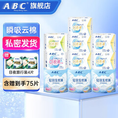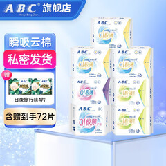¥69.90ABC卫生巾轻薄透气姨妈巾日用夜用加长夜用组合 日夜组合含旅行装9包72片