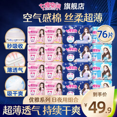 ¥58.90七度空间(SPACE 7) 卫生巾76片日夜用套装优雅系列超薄棉柔姨妈巾日用40片夜用36片整箱批发