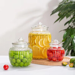 ¥13.90莱妙依 泡菜罐3件套多功能玻璃密封罐带盖茶叶陈皮储存罐干货收纳罐 大中小三件套