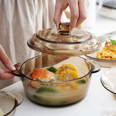 ¥39.90迈乐佳(MALEEJIA) 泡面碗ins风茶色玻璃双耳带盖家用大号汤碗微波炉 1个装【茶色】