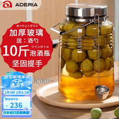 ¥278.00阿德利亚(ADERIA)日本进口石塚硝子青梅泡酒瓶容器腌菜坛子酵素瓶陈皮专用密封罐子 5L不锈钢盖泡酒瓶+酒勺(10斤)