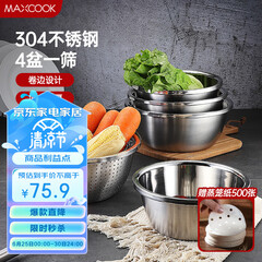 ¥75.90美厨(maxcook)304不锈钢盆筛五件套 加厚大号洗菜盆 米筛味斗套装 MCWA550