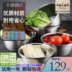¥229.90EWIWE不锈钢盆筛五件套调料盆洗菜和面盆淘米盛菜沥水篮沙拉盆家用套装 20-22-24-26cm盆+26cm筛